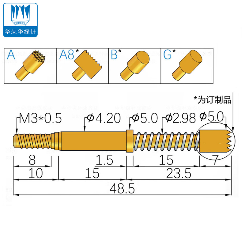 這兩種探針設(shè)計(jì)有特定的工作行程和彈簧力,使其能夠應(yīng)對(duì)高達(dá)50A或更高的持續(xù)電流。這些探針的結(jié)構(gòu)設(shè)計(jì)通常包含高質(zhì)量材料,如鍍金的針桿和針管,以提高導(dǎo)電性能和耐腐蝕性,確保長期穩(wěn)定和可靠的測試結(jié)果3。
