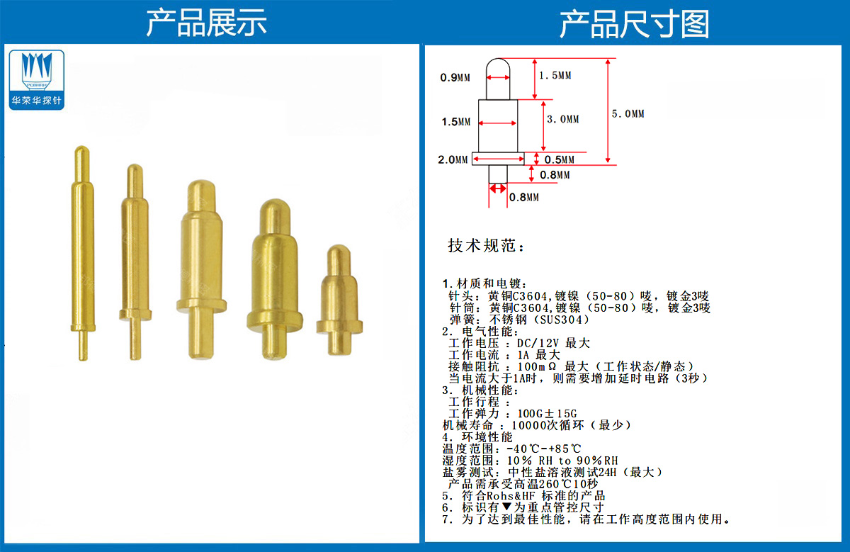 產品介紹:這個針通常用于智能手表,藍牙耳機上的有充電的功能,但是探針總體來說還是測試的