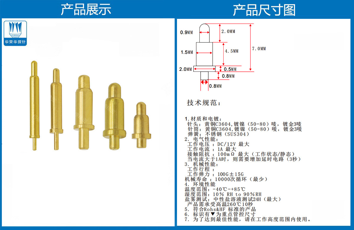 產品介紹:這個針通常用于智能手表,藍牙耳機上的有充電的功能,但是探針總體來說還是測試的