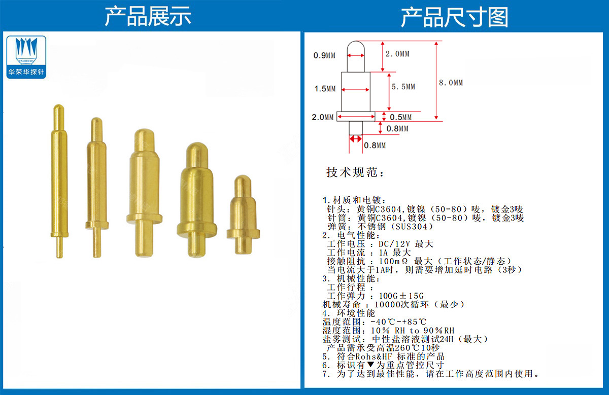 產品介紹:這個針通常用于智能手表,藍牙耳機上的有充電的功能,但是探針總體來說還是測試的