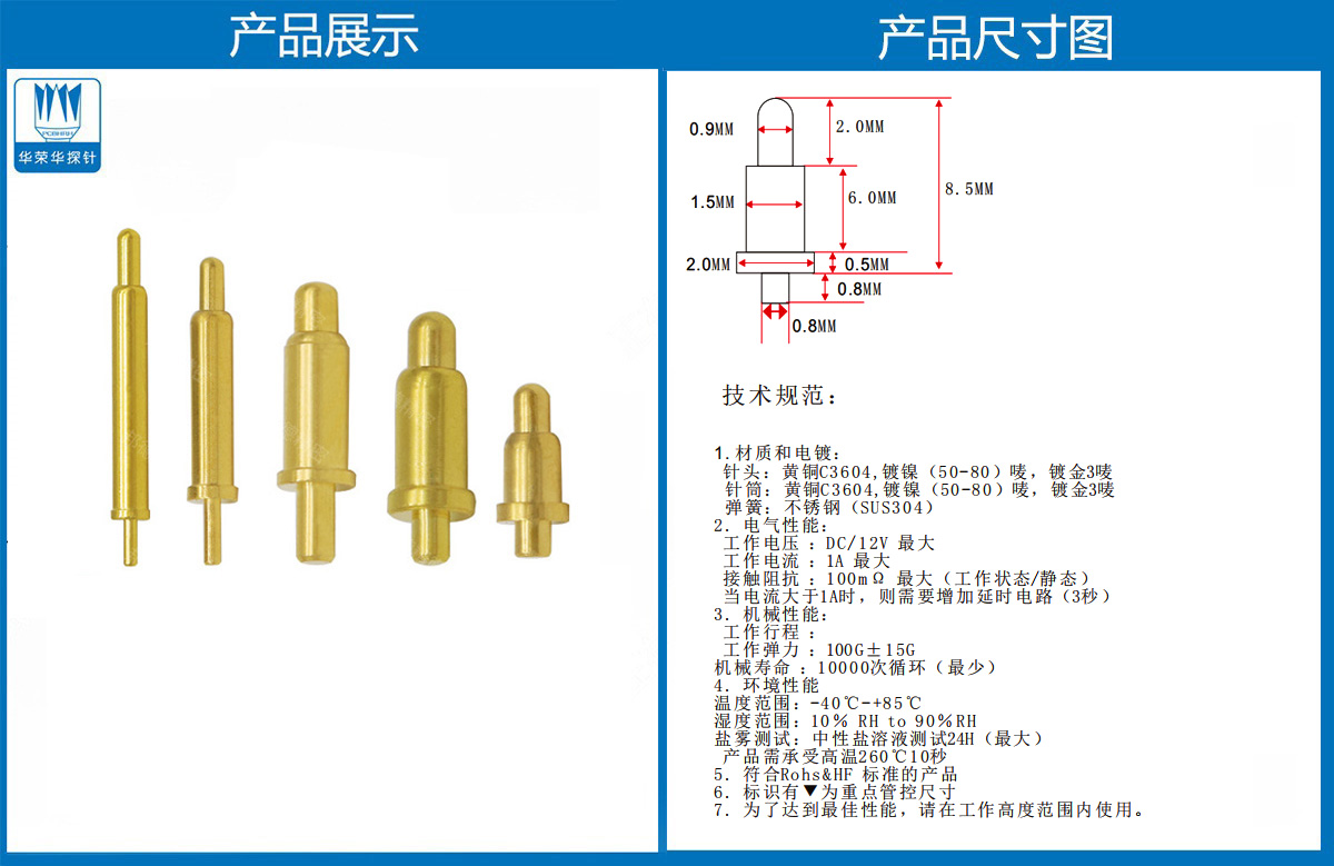產品介紹:這個針通常用于智能手表,藍牙耳機上的有充電的功能,但是探針總體來說還是測試的