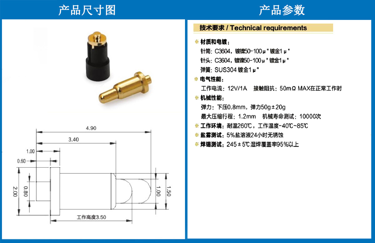 產品介紹:這個針通常用于智能手表,藍牙耳機上的有充電的功能,但是探針總體來說還是測試的