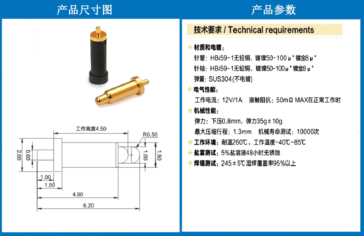 產(chǎn)品介紹:這個(gè)針通常用于智能手表,藍(lán)牙耳機(jī)上的有充電的功能,但是探針總體來說還是測試的